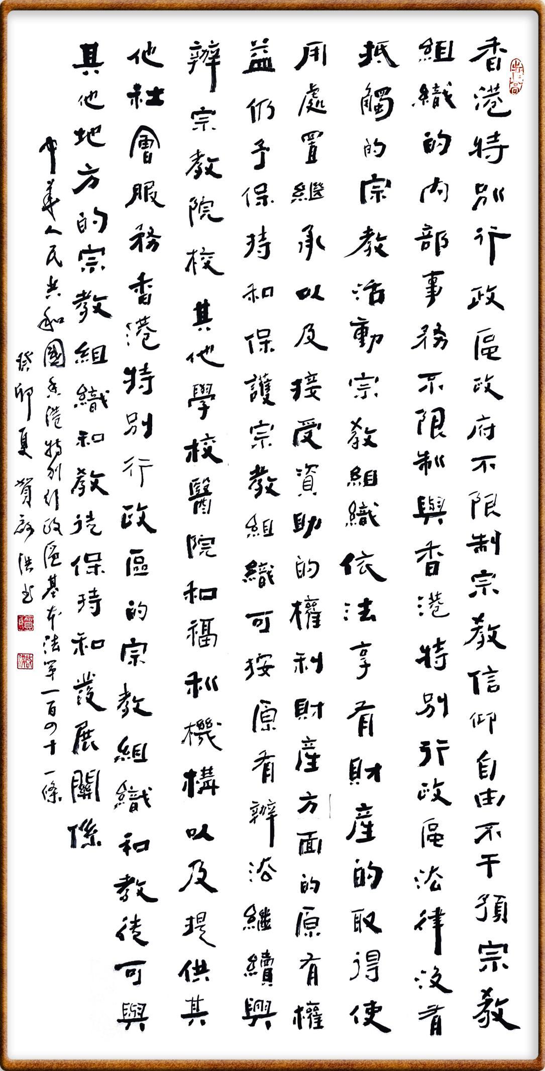 香港基本法第一百四十一條 香港特別行政區(qū)政府不限制宗教信仰自由,不干預(yù)宗教組織的內(nèi)部事務(wù),不限制與香港特別行政區(qū)法律沒有抵觸的宗教活動。