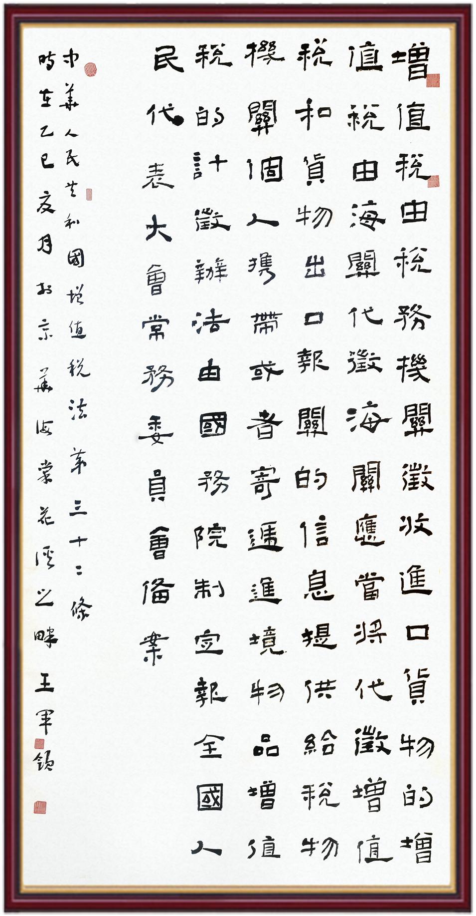 稅收一頭連著國(guó)計(jì),一頭連著民生。全面推進(jìn)依法治稅,是全面依法治國(guó)基本方略在稅收領(lǐng)域的集中體現(xiàn)。《中華人民共和國(guó)增值稅法》將于2026年1月1日起施行,對(duì)全面落實(shí)稅收法定原則、健全有利于高質(zhì)量發(fā)展的增值稅制度、規(guī)范增值稅的征收和繳納、保護(hù)納稅人合法權(quán)益具有重要意義。繼書寫《中華人民共和國(guó)民法典》《中華人民共和國(guó)憲法》《中華人民共和國(guó)國(guó)旗法》《中華人民共和國(guó)國(guó)徽法》《中華人民共和國(guó)國(guó)歌法》《中華人民共和國(guó)法官法》《中華人民共和國(guó)黃河保護(hù)法》等法律法規(guī)之后,法制日?qǐng)?bào)社將筆端對(duì)準(zhǔn)《中華人民共和國(guó)增值稅法》。