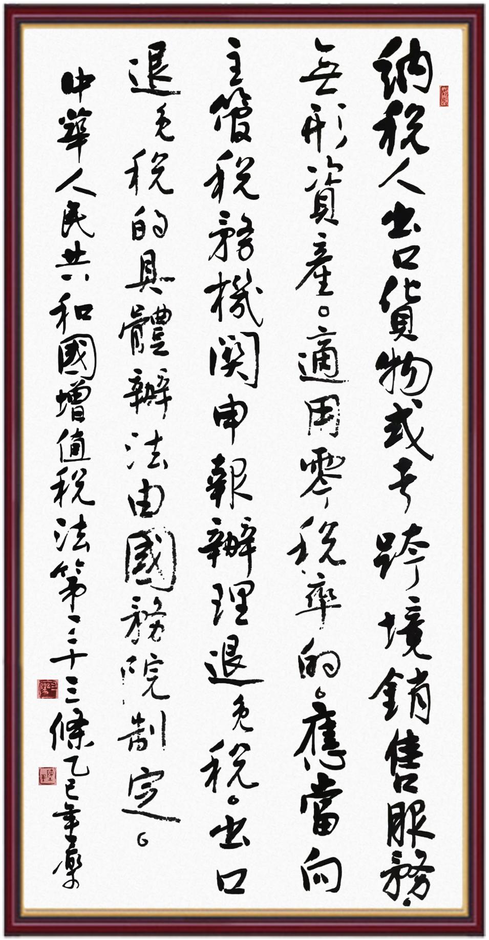 增值稅法第三十三條 納稅人出口貨物或者跨境銷(xiāo)售服務(wù)、無(wú)形資產(chǎn),適用零稅率的,應(yīng)當(dāng)向主管稅務(wù)機(jī)關(guān)申報(bào)辦理退(免)稅。出口退(免)稅的具體辦法,由國(guó)務(wù)院制定。