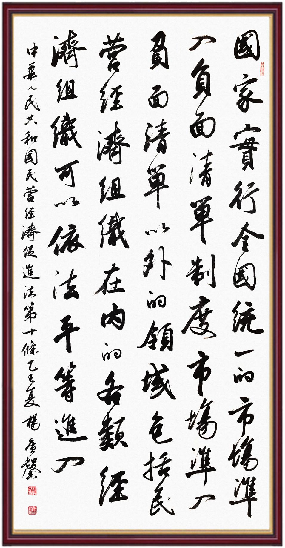 《中華人民共和國民營經(jīng)濟(jì)促進(jìn)法》自今年5月20日起施行。作為我國首部專門關(guān)于民營經(jīng)濟(jì)發(fā)展的基礎(chǔ)性法律,民營經(jīng)濟(jì)促進(jìn)法將支持和保障民營經(jīng)濟(jì)發(fā)展的法律制度融入中國特色社會主義法律體系,具有重大的法治意義,為促進(jìn)民營經(jīng)濟(jì)持續(xù)、健康、高質(zhì)量發(fā)展提供了堅實的法治保障。為更好地學(xué)習(xí)、宣傳、貫徹這部法律,法治日報社聯(lián)合司法部普法與依法治理局,開展“‘書·法’系列活動之書寫《中華人民共和國民營經(jīng)濟(jì)促進(jìn)法》”活動。