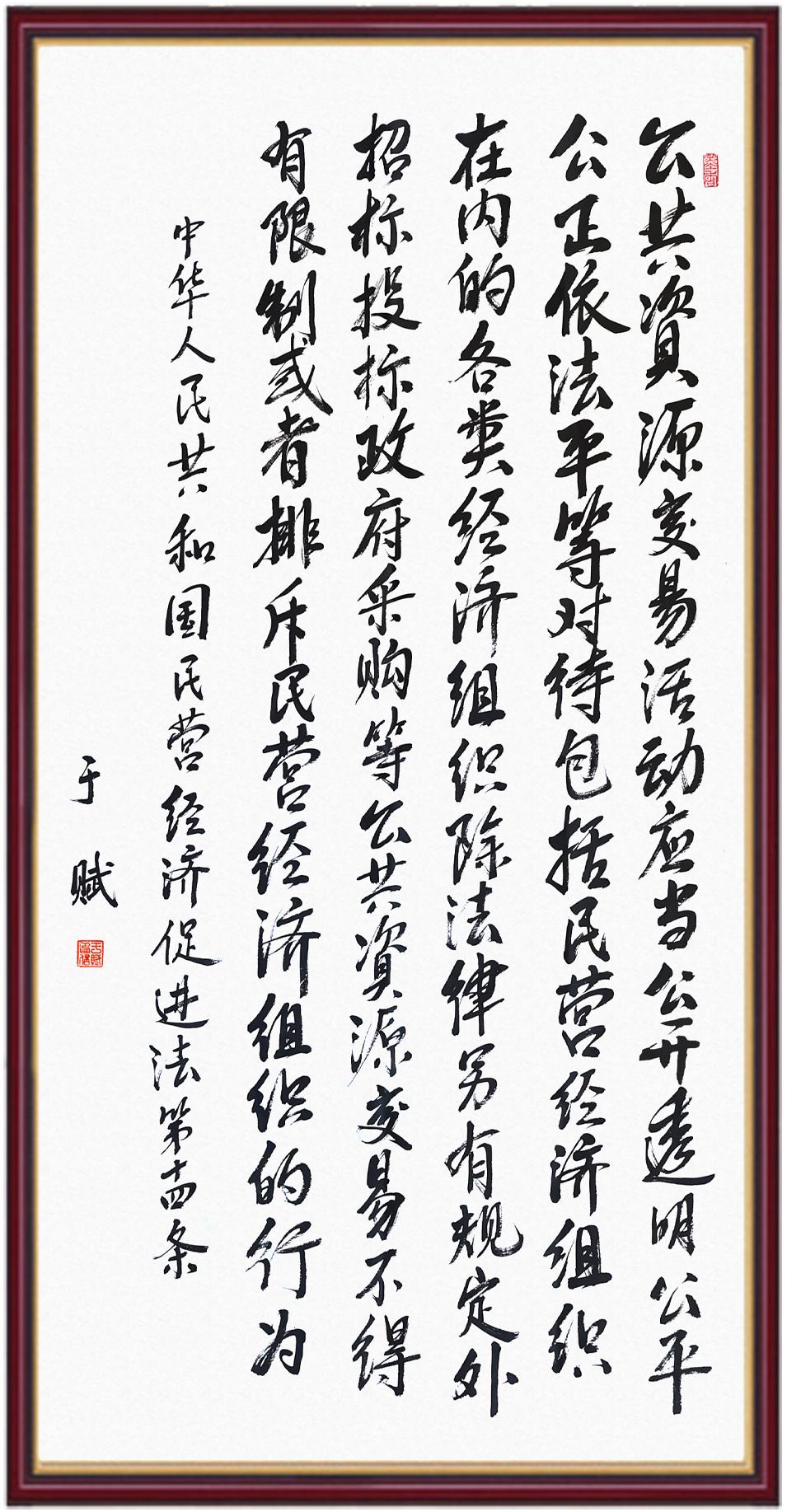 《中華人民共和國(guó)民營(yíng)經(jīng)濟(jì)促進(jìn)法》自今年5月20日起施行。作為我國(guó)首部專門(mén)關(guān)于民營(yíng)經(jīng)濟(jì)發(fā)展的基礎(chǔ)性法律,民營(yíng)經(jīng)濟(jì)促進(jìn)法將支持和保障民營(yíng)經(jīng)濟(jì)發(fā)展的法律制度融入中國(guó)特色社會(huì)主義法律體系,具有重大的法治意義,為促進(jìn)民營(yíng)經(jīng)濟(jì)持續(xù)、健康、高質(zhì)量發(fā)展提供了堅(jiān)實(shí)的法治保障。為更好地學(xué)習(xí)、宣傳、貫徹這部法律,法治日?qǐng)?bào)社聯(lián)合司法部普法與依法治理局,開(kāi)展“‘書(shū)·法’系列活動(dòng)之書(shū)寫(xiě)《中華人民共和國(guó)民營(yíng)經(jīng)濟(jì)促進(jìn)法》”活動(dòng)。