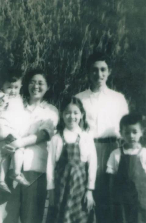 解放后,父親母親與紅雛、紅勝、紅林在上海。