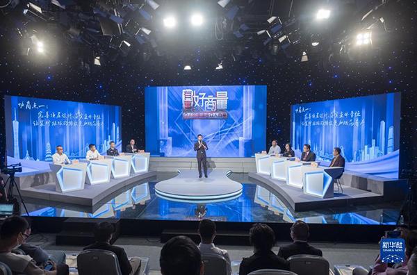 政協(xié)委員、政府部門代表、物業(yè)代表等在廣州市政協(xié)“有事好商量”民生實(shí)事協(xié)商平臺(tái),圍繞加強(qiáng)裝修垃圾管理議題展開(kāi)協(xié)商(2021年11月19日攝)。新華社發(fā)(莊小龍 攝)