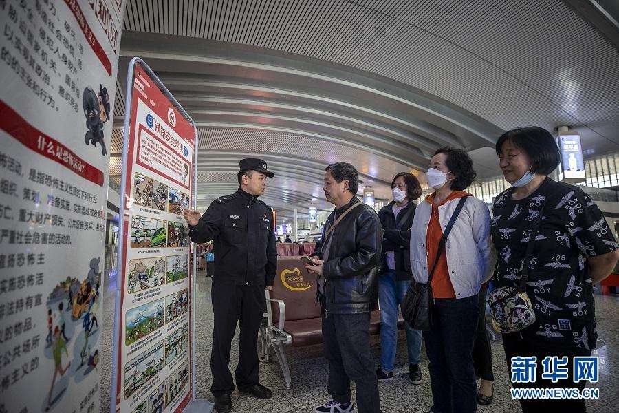 在重慶北站、重慶西站、萬(wàn)州北站等鐵路樞紐車站,重慶鐵路警方聯(lián)合屬地公安機(jī)關(guān)、車站管委會(huì)、鐵路企業(yè)等單位,組織民警、職工在站前廣場(chǎng)、候車大廳等旅客較多的地方,宣講鐵路安全常識(shí)、電信詐騙、反邪教等知識(shí),引導(dǎo)廣大旅客增強(qiáng)國(guó)家安全意識(shí)。