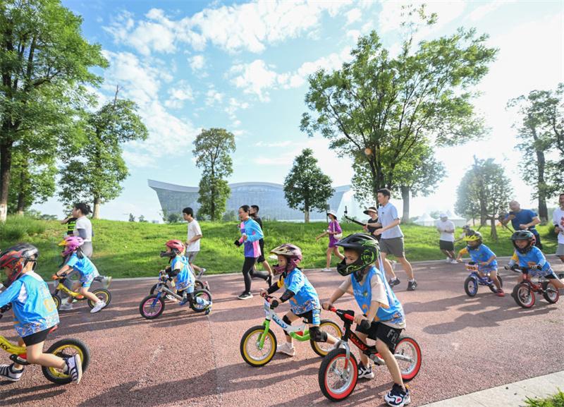 7月16日,在成都高新區(qū)桂溪生態(tài)公園,健身愛好者在城市綠道上運(yùn)動。新華社記者王曦攝