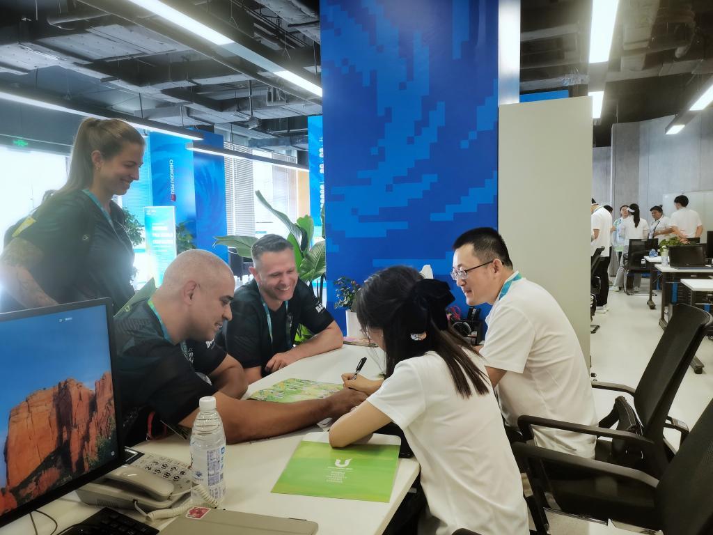 國外大學生代表團成員在成都大運村咨詢城市文化體驗觀光線路活動。受訪者供圖