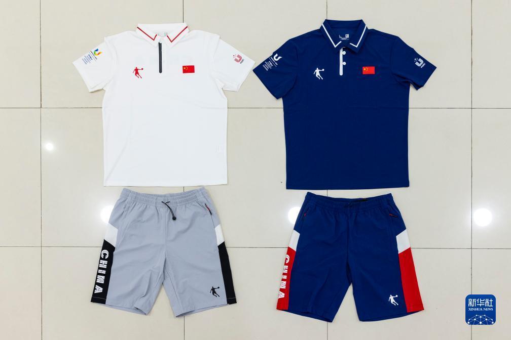 這是7月24日拍攝的第31屆世界大學生夏季運動會中國代表團成員配發(fā)裝備中的POLO短袖T恤衫和梭織五分褲。新華社記者 沈伯韓 攝