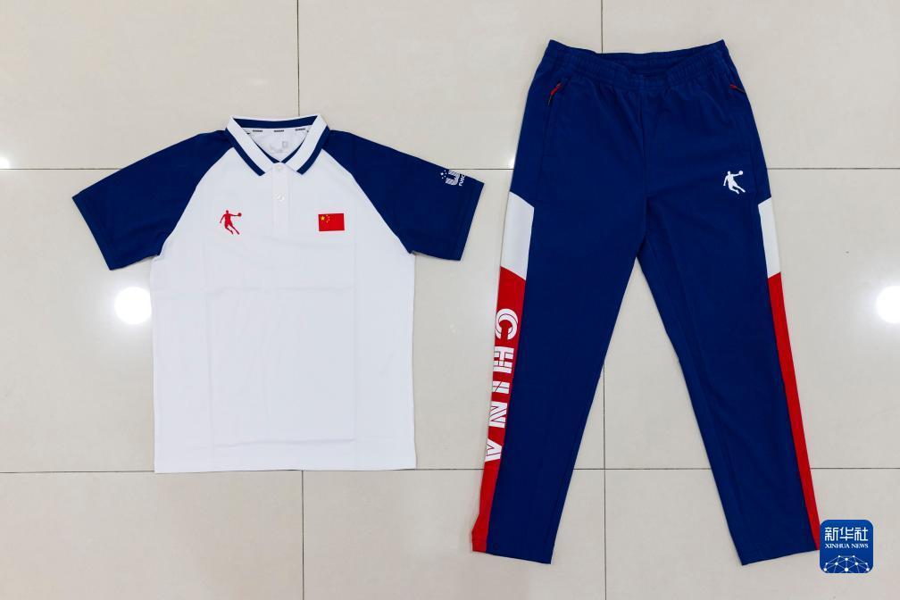 這是7月24日拍攝的第31屆世界大學生夏季運動會中國代表團成員配發(fā)裝備中的POLO短T恤衫和長褲。新華社記者 沈伯韓 攝