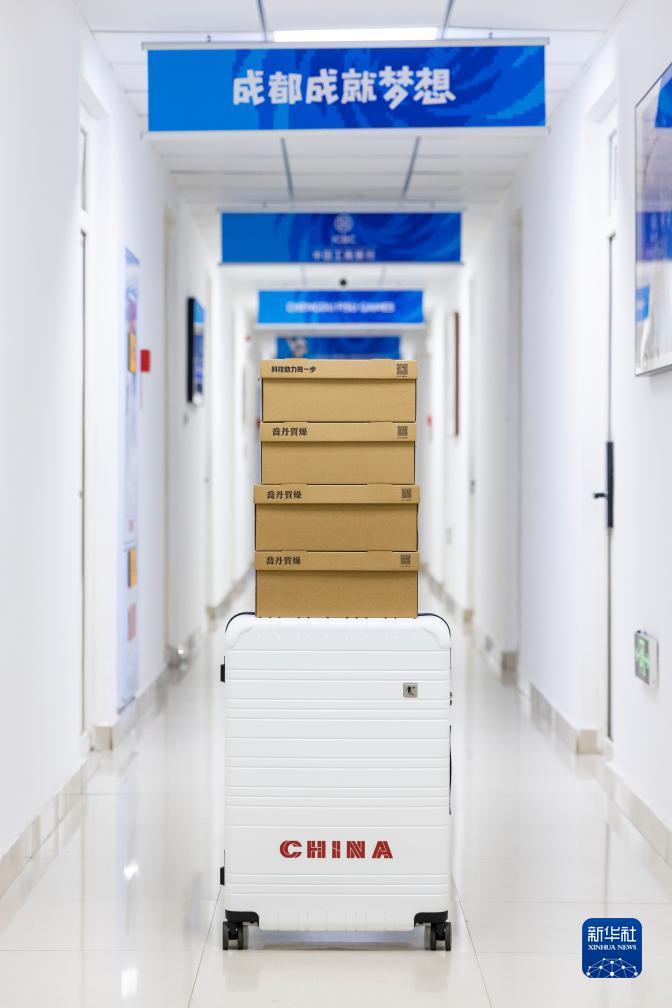 這是7月24日在第31屆世界大學生夏季運動會大運村中國代表團駐地拍攝的代表團成員配發(fā)裝備。新華社記者 沈伯韓 攝