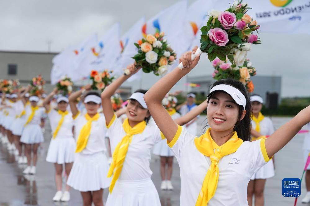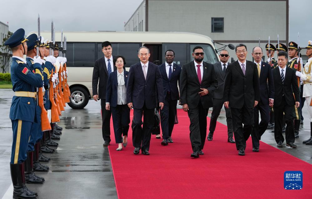 7月27日下午,來(lái)華出席成都大運(yùn)會(huì)開幕式并訪問(wèn)的圭亞那總統(tǒng)阿里抵達(dá)四川省成都市。這是歡迎儀式現(xiàn)場(chǎng)。