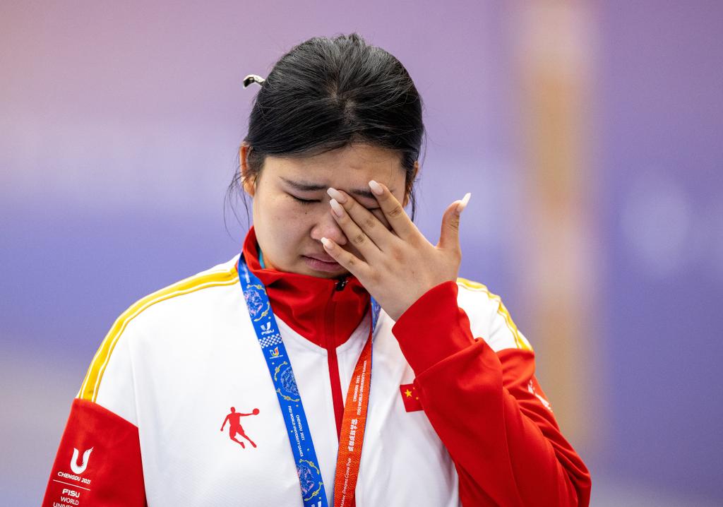 “之前覺(jué)得指定能拿金牌,結(jié)果團(tuán)體沒(méi)拿著,個(gè)人也沒(méi)拿著。教練還刺激我,說(shuō)‘你吹的牛圓不回來(lái)了吧’,我就更難受了?!蓖鯘扇蹇薜秒p眼皮貼都掉了,但她很快又擦干了眼淚,“這回讓志愿者看笑話了,下次肯定有機(jī)會(huì)再(把金牌)拿回來(lái)。”