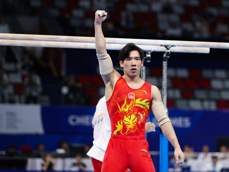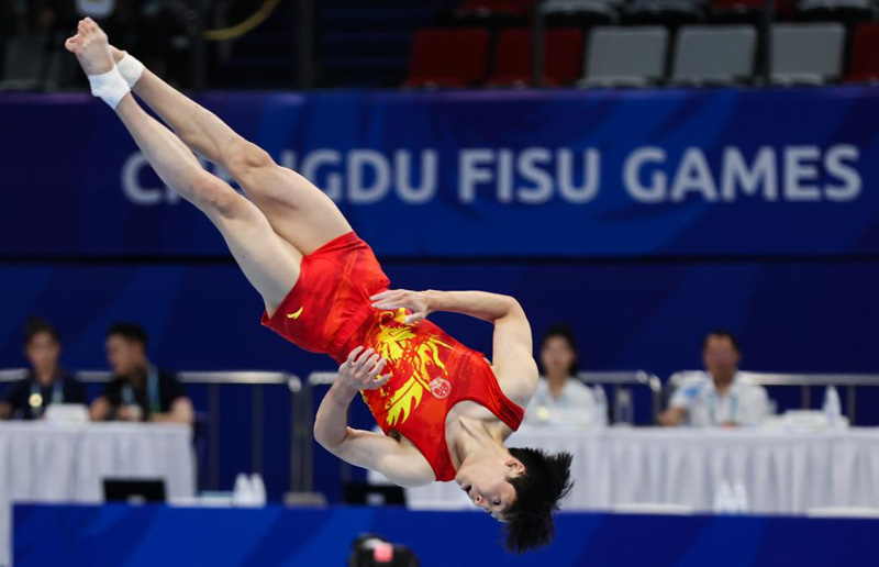新華社成都8月2日電(記者譚暢、朱青)成都大運(yùn)會體操項目2日進(jìn)入第二個比賽日,由張博恒、鄒敬園、蘇煒德、蘭星宇、侍聰組成的中國隊以262.594分獲得男子團(tuán)體冠軍。