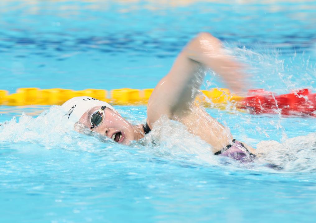 8月4日,李冰潔在女子1500米自由泳決賽中。新華社記者蘭紅光攝