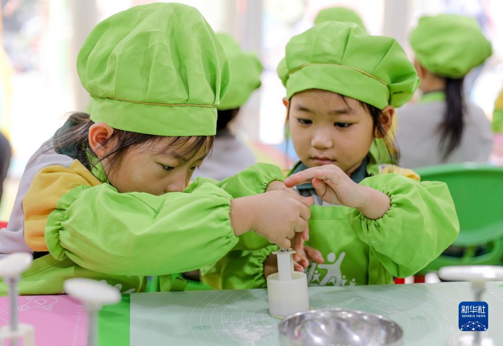 9月26日,在河北省衡水市桃城區(qū)一家幼兒園,孩子們共同制作月餅。