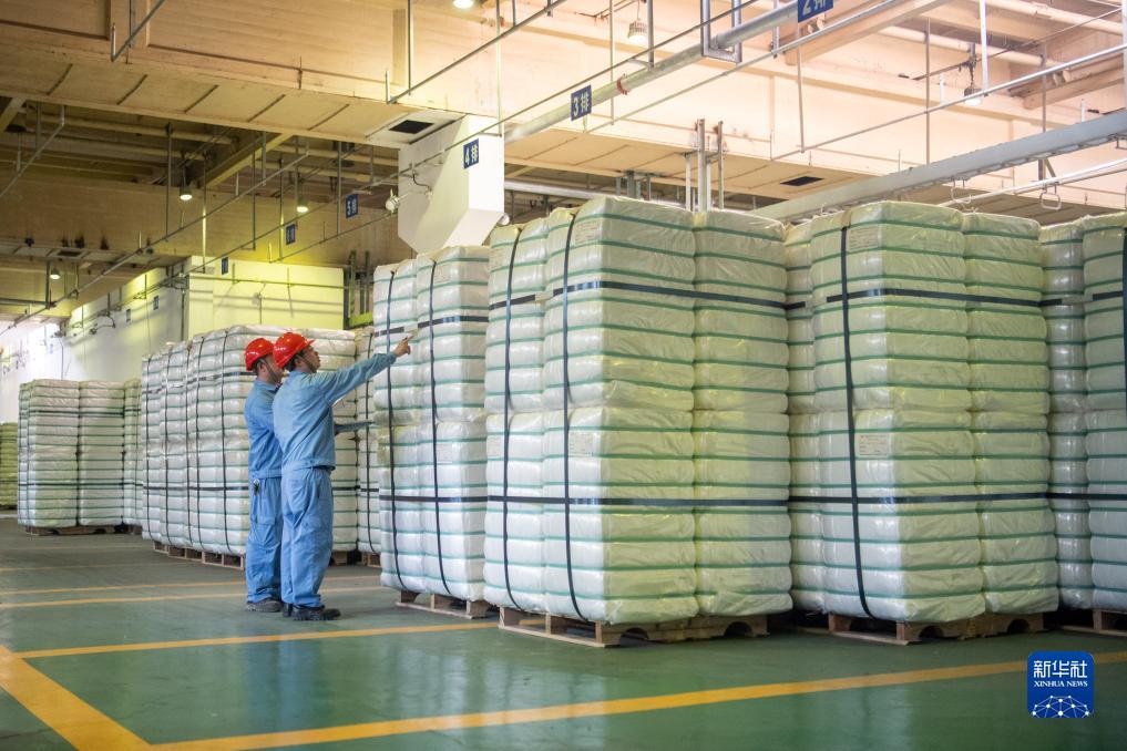 10月17日,在中國石化集團重慶川維化工有限公司,工作人員在查看產(chǎn)品打包情況。