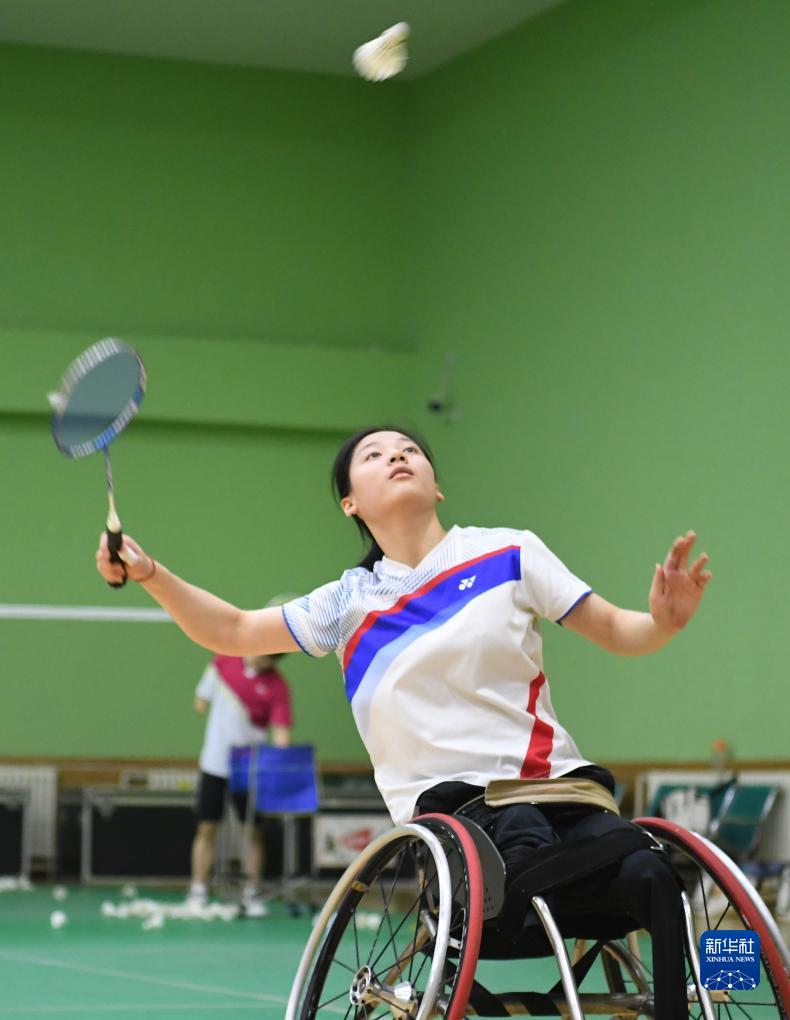 9月12日,中國殘疾人羽毛球隊運動員屈子墨在訓(xùn)練中。新華社記者 朱旭東 攝