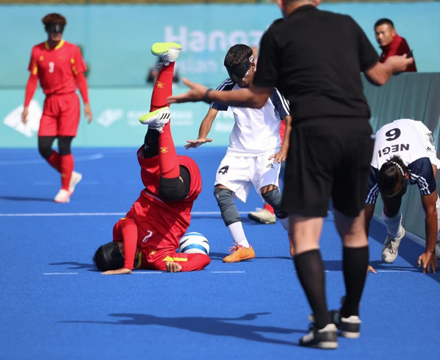 10月23日,杭州亞殘運會盲人足球比賽開賽,首場比賽是中國盲人男子足球隊對陣印度隊。中國隊的綜合實力更勝一籌,發(fā)動了多次頗具威脅的進攻,最終以4:0戰(zhàn)勝對手。