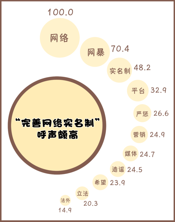 網(wǎng)絡(luò)暴力實施者借助網(wǎng)絡(luò)的隱蔽性,披著“隱形的斗篷”躲在暗處,享受著施暴的快感。對此,網(wǎng)民也紛紛發(fā)表觀點。分析“網(wǎng)絡(luò)暴力”有關(guān)熱門帖文下的評論可以看出,“實名制”“平臺”“嚴(yán)懲”等詞語出現(xiàn)頻率較高。