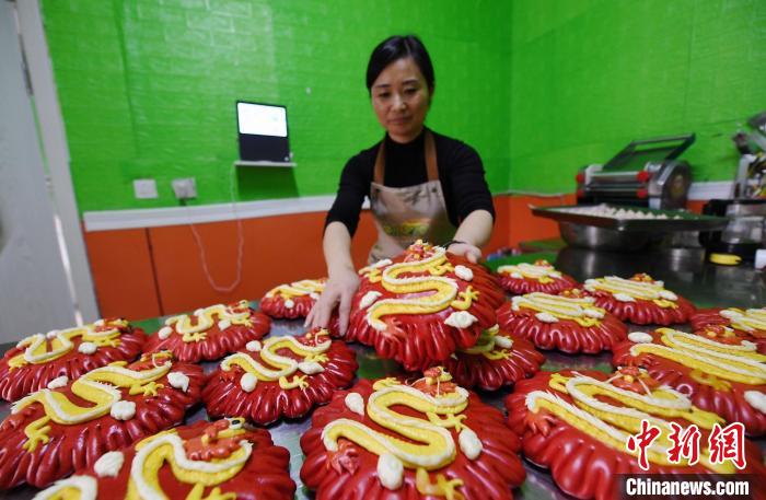 在我國(guó)北方地區(qū),大多有著“過(guò)大年,發(fā)面蒸花饃”的年俗,其中“發(fā)”,寓意新的一年發(fā)家發(fā)財(cái),“蒸”寓意來(lái)年日子蒸蒸日上。臨近春節(jié),河北省定州市民間手藝人蘇利榮和同事們也忙碌了起來(lái),憑借著專業(yè)的面點(diǎn)技術(shù),一塊塊柔軟的面團(tuán),在她們的手中變身為造型各異的創(chuàng)意花饃。為迎接龍年的到來(lái),她們專門設(shè)計(jì)蒸制了帶有“龍”元素的花饃,“龍鳳呈祥”“金龍送?!薄褒埬甏蠹薄螒B(tài)各異、喜慶吉祥的花饃傳遞著濃濃的年味兒。(文/李玉素 圖/白永民)
