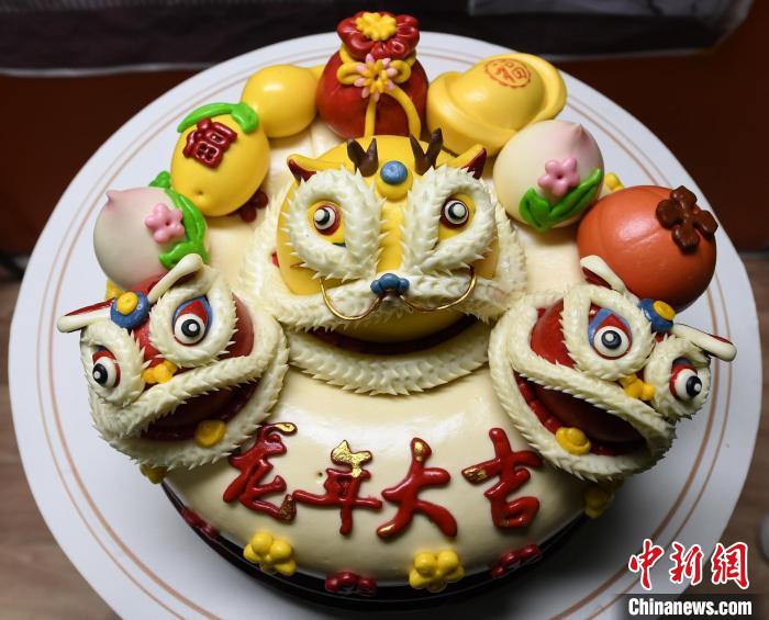 圖為蒸制的“醒獅龍”花饃。白永民 攝