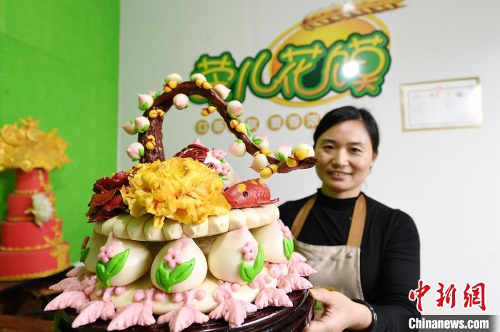 圖為蘇利榮及同事們制作的“龍鳳呈祥”花饃。白永民 攝