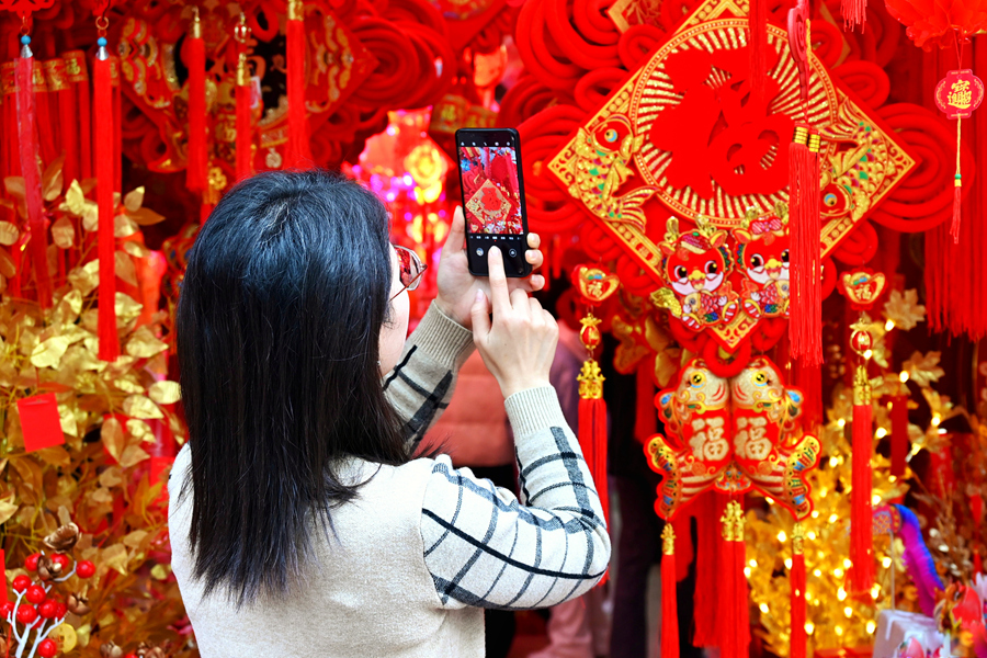 傳統(tǒng)“龍”形象的新年裝飾成為搶手貨。人民網(wǎng)記者 陳博攝