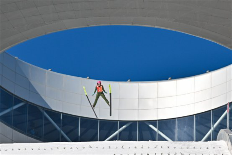 運(yùn)動(dòng)員從離地百米的高臺(tái)滑下,俯沖、加速,自跳臺(tái)末端躍向空中,在空中飛行數(shù)秒,呈“V”字形劃出優(yōu)美的拋物線后落地,這就是被稱為“勇敢者游戲”的跳臺(tái)滑雪。2月3日,“十四冬”張家口賽區(qū)的國(guó)家跳臺(tái)滑雪中心(雪如意)見證了兩場(chǎng)勇敢者的比拼,在“十四冬”跳臺(tái)滑雪最具觀賞性的大跳臺(tái)角逐中,吉林省代表隊(duì)的宋祺武和劉奇分獲公開組男女個(gè)人冠軍。(記者 馮雪玉 王曉博 賈奕村)