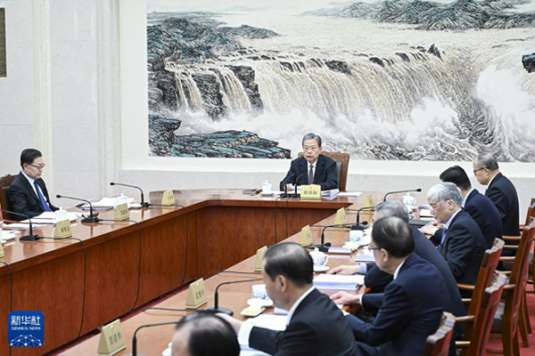 2月7日下午,十四屆全國人大常委會第十九次委員長會議在北京人民大會堂舉行,趙樂際委員長主持。新華社記者 張領(lǐng) 攝