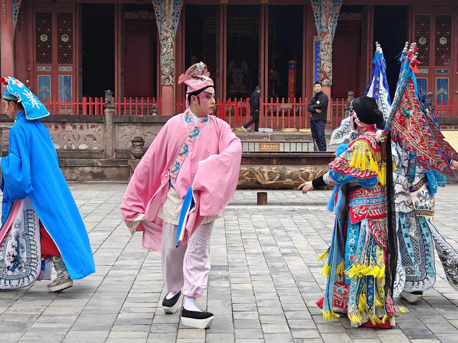 “咚鏘咚咚鏘!”春節(jié)里,四川德陽(yáng)廣漢文廟內(nèi),戲文聲,鑼鼓聲,叫好聲,掌聲響成一片。