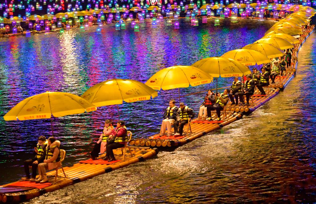 2月16日,游客在宣恩縣城體驗“龍游貢水”。(宋文 攝)