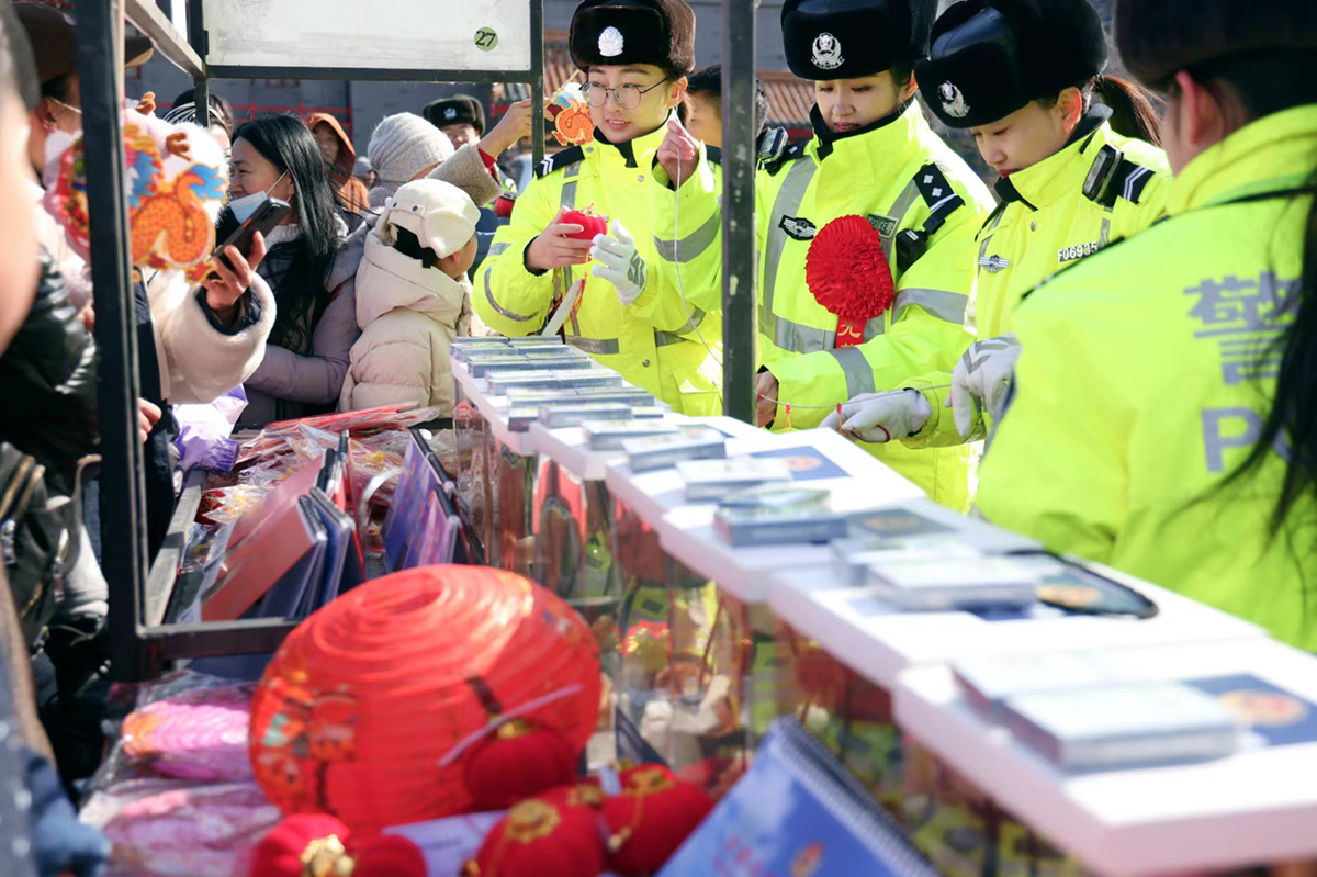 2月23日,遼寧省沈陽市公安局交通警察局沈河大隊(duì)民輔警在人員密集場(chǎng)所、旅游景點(diǎn)開展以普及交通安全知識(shí)為主題的有獎(jiǎng)猜迷活動(dòng),讓居民們?cè)跉g慶元宵佳節(jié)的同時(shí)學(xué)習(xí)交通安全知識(shí)。
