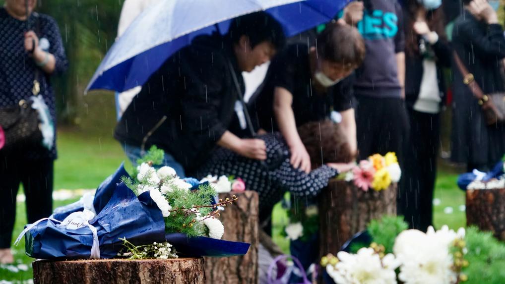 4月1日下午,在湖北武漢市石門(mén)峰紀(jì)念公園,山丘綿延,鮮花翠柏,一場(chǎng)集體公益生態(tài)藝術(shù)葬正在舉行。忽而雷聲陣陣,春雨降下,挽歌輕輕奏響,青年舞者在雨中起舞。起靈、送行、落葬,親友們手捧花束,目送22位逝者在此長(zhǎng)眠。