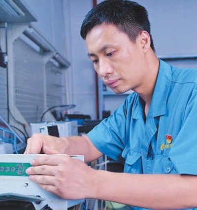 不斷發(fā)現(xiàn)問題,不斷解決問題。在馬耀鋒的工作間,可以看到他正在檢修的受電弓、車載電視等設(shè)備?!斑^去,這些設(shè)備壞了就整機更換,太浪費了?!瘪R耀鋒說,“我就把出故障的部件搬回來研究,現(xiàn)在只修不換,能節(jié)省不少成本?!逼鸪?,面對電子元器件密密麻麻的電路構(gòu)造,馬耀鋒無從下手。為了弄清原理,馬耀鋒一次次進行實景模擬試驗,還購買書籍學(xué)習(xí)相關(guān)知識,終于成功完成了自行組裝試驗,最終攻克了配件的最小化單元維修問題。