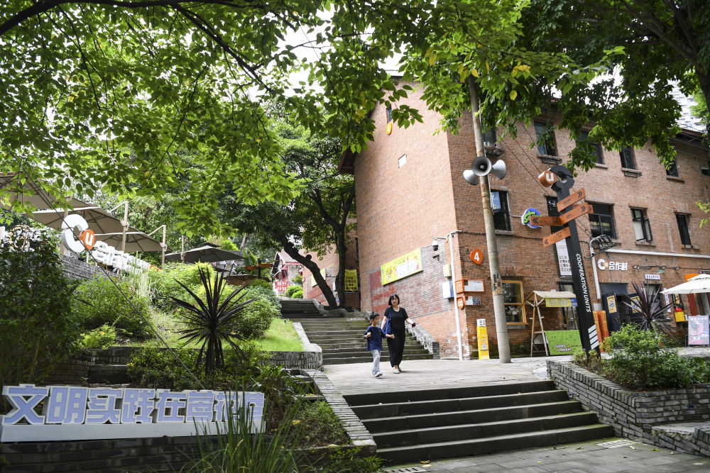 ↑這是7月15日拍攝的重慶市江北區(qū)五里店街道鶯花巷合作村青年國(guó)際社區(qū)景象。