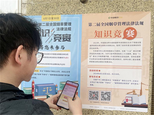為推動“八五”普法走深走實(shí),浙江省溫州市煙草專賣局以全國煙草管理法律法規(guī)知識競賽活動為契機(jī),創(chuàng)新普法宣傳形式,打造員工、零售戶、消費(fèi)者共同參與的立體化普法矩陣,持續(xù)提升普法“輻射面”,繪好普法“風(fēng)景線”,在全市掀起煙草專賣法律法規(guī)學(xué)習(xí)活動熱潮,助力營造全社會尊法學(xué)法守法用法的良好法治氛圍。