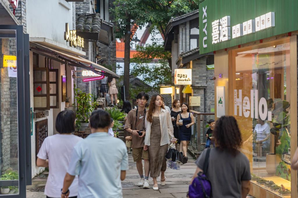 據(jù)南岸區(qū)商務委副主任劉江勇介紹,改造后的下浩里自2022年11月開街以來,入住商家已達110家,70余棟建筑中,招商率超過9成,整體出租率達90%。