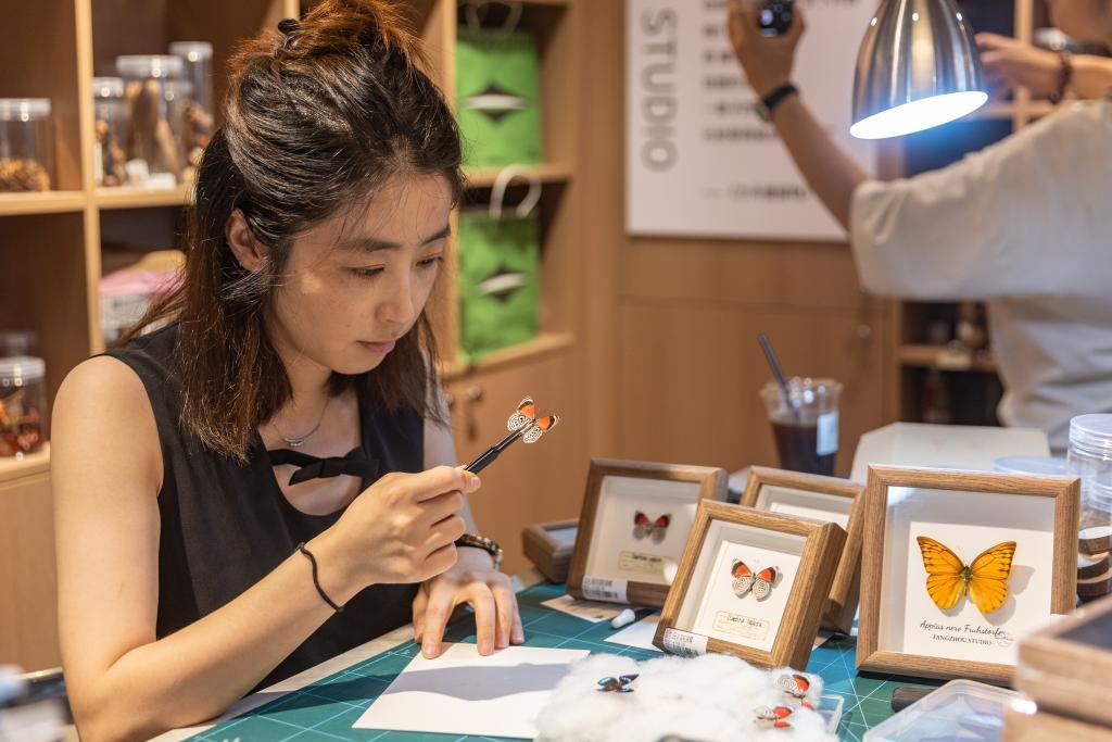 7月28日,在龍門浩老街·下浩里,青年創(chuàng)業(yè)者曾進在她主理的方舟遺留物·標本工作室內(nèi)制作標本。新華社記者 黃偉 攝