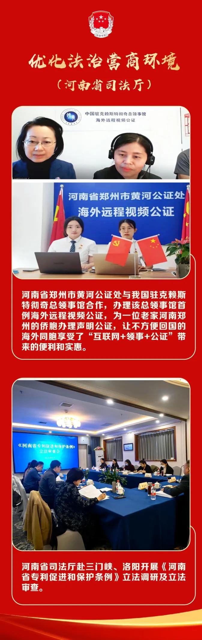 賀振華:河南省司法廳立足“一個(gè)統(tǒng)抓、五大職能”工作定位,牢固樹立“大司法行政”理念,以大視野大格局認(rèn)識(shí)工作、大責(zé)任大擔(dān)當(dāng)謀劃工作、大魄力大決心推進(jìn)工作,主動(dòng)融入?yún)⑴c經(jīng)濟(jì)社會(huì)發(fā)展大局,持續(xù)釋放法治生產(chǎn)力,全力營(yíng)造穩(wěn)定公平透明、可預(yù)期的法治化營(yíng)商環(huán)境。