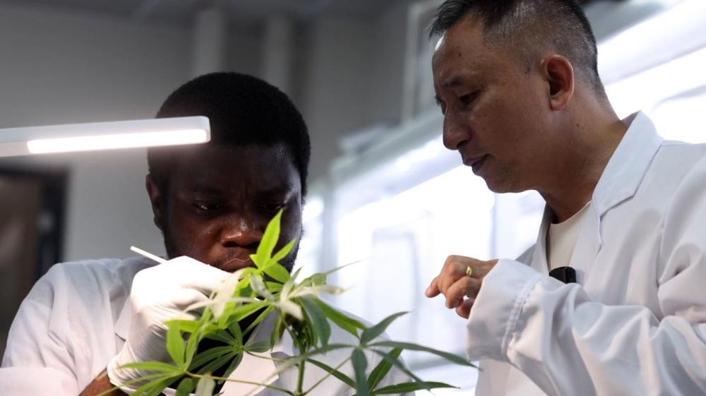 格雷戈里的家鄉(xiāng)尼日利亞是世界上最大的木薯生產(chǎn)國。2023年7月,他來到海南開展木薯蟲害綠色綜合防控研究。他希望將自己在中國學(xué)習(xí)到的知識和技術(shù)帶到尼日利亞,為推動當?shù)剞r(nóng)業(yè)發(fā)展、促進社會經(jīng)濟繁榮貢獻力量。