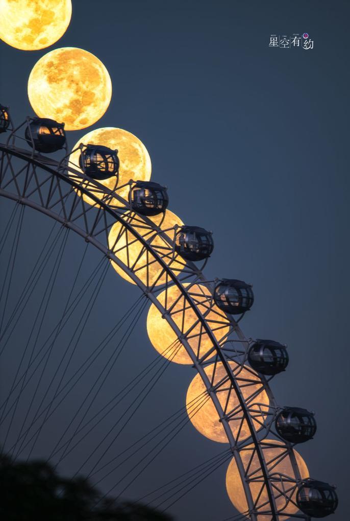 星空攝影師魏偉2023年9月29日(農(nóng)歷八月十五)在福建福州拍攝的中秋月(多張疊加),也是一輪“超級(jí)月亮”。(星聯(lián)CSVA供圖)