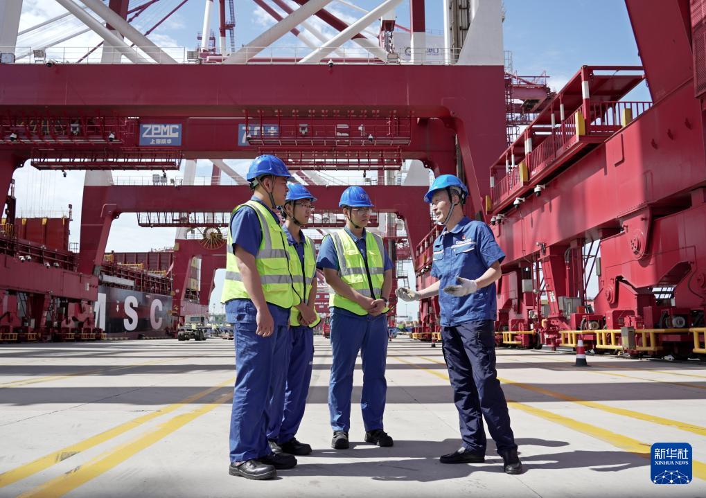 許振超在山東港口青島港集裝箱碼頭調(diào)研(9月2日攝)。新華社發(fā)(閆軍攝)