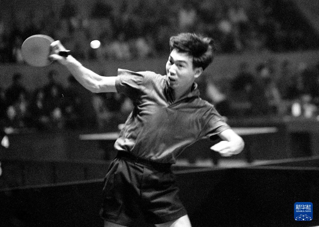 這是1961年4月11日,中國選手張燮林在第26屆世界乒乓球錦標賽單項比賽中。新華社記者 鄒健東 攝