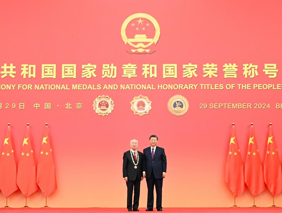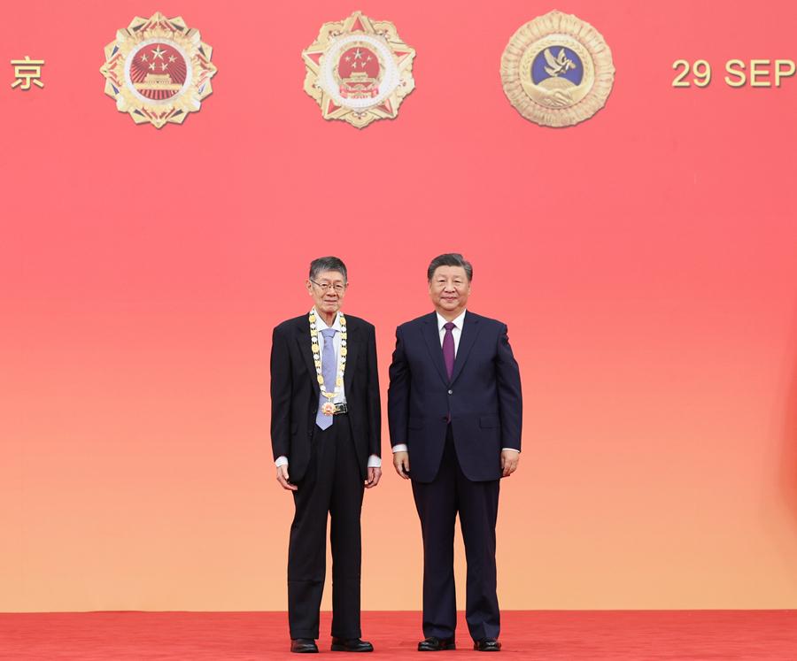 9月29日,中華人民共和國國家勛章和國家榮譽(yù)稱號(hào)頒授儀式在北京人民大會(huì)堂金色大廳隆重舉行。中共中央總書記、國家主席、中央軍委主席習(xí)近平向國家勛章和國家榮譽(yù)稱號(hào)獲得者頒授勛章獎(jiǎng)?wù)虏l(fā)表重要講話。