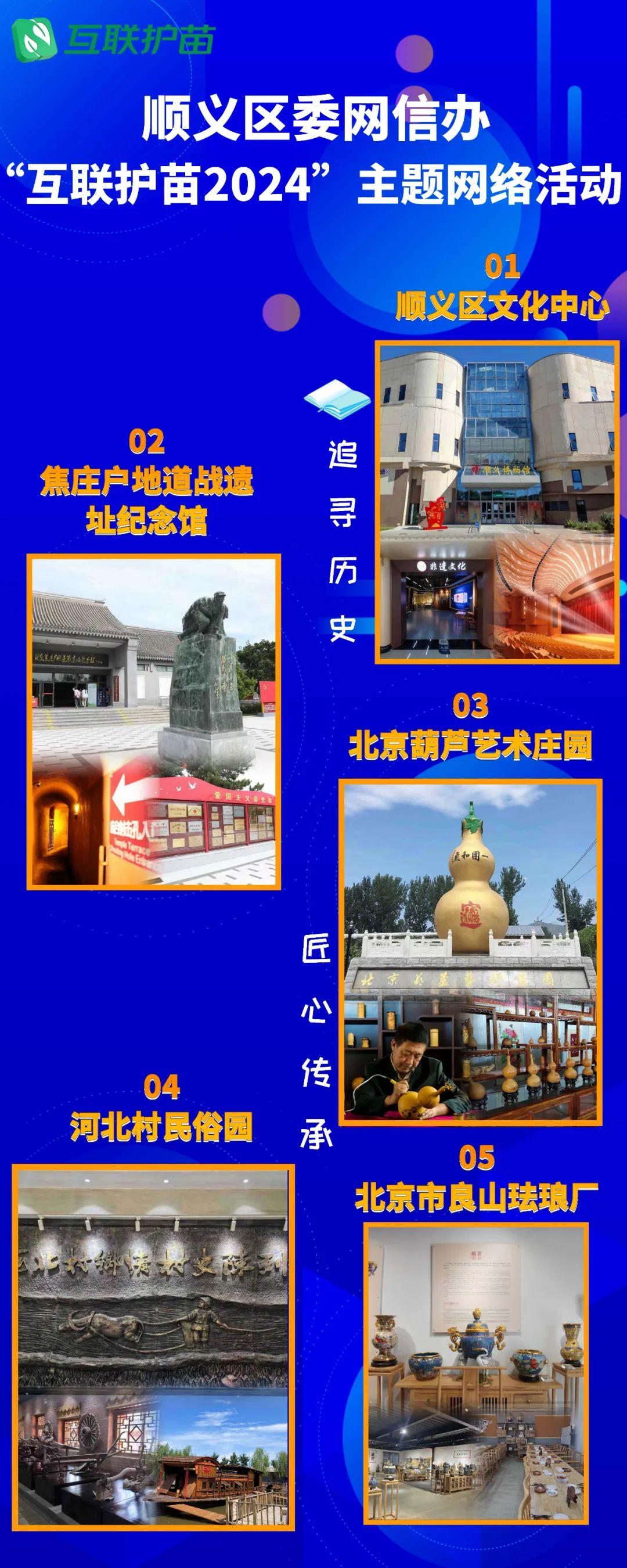 聯(lián)合區(qū)文旅局推出“追尋歷史,匠心傳承”研學(xué)路線(納入市級6條推廣線路之一),設(shè)置順義區(qū)文化中心、焦莊戶地道戰(zhàn)遺址紀念館、北京葫蘆藝術(shù)莊園、河北村民俗園、北京市良山琺瑯廠,共五個點位,學(xué)生可通過現(xiàn)場打卡、游歷體驗等開展非遺、愛國主義教育等社會實踐活動,并已通過高德、百度、美團進行線上發(fā)布。