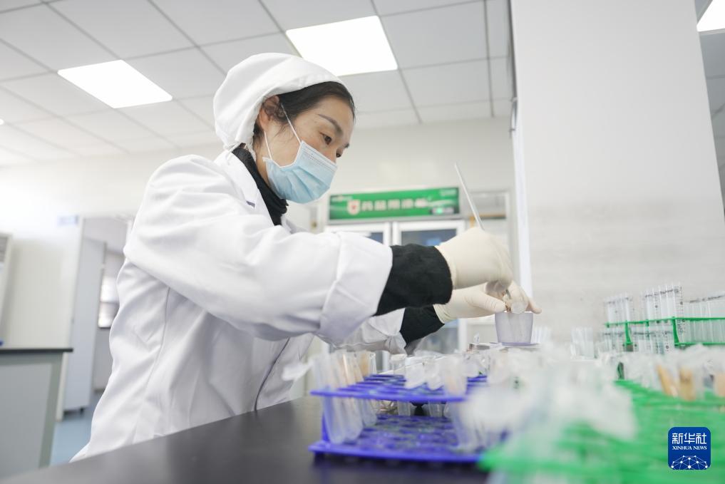 11月29日,在石門縣一家家禽加工企業(yè)實(shí)驗(yàn)室,工作人員對雞肉樣本進(jìn)行抽檢。