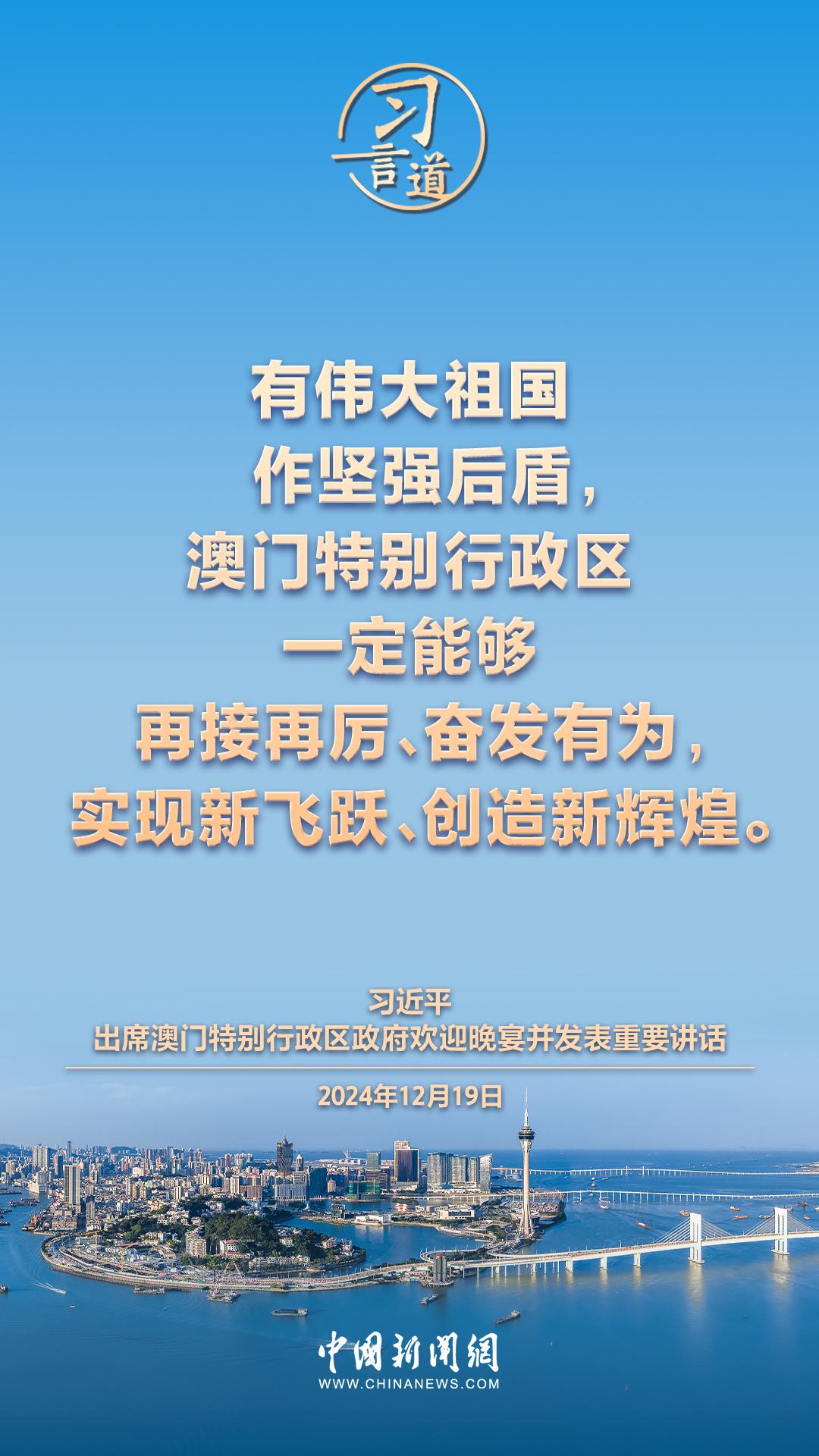 國(guó)家主席習(xí)近平19日晚出席澳門(mén)特別行政區(qū)政府歡迎晚宴并發(fā)表重要講話(huà)。習(xí)近平指出——