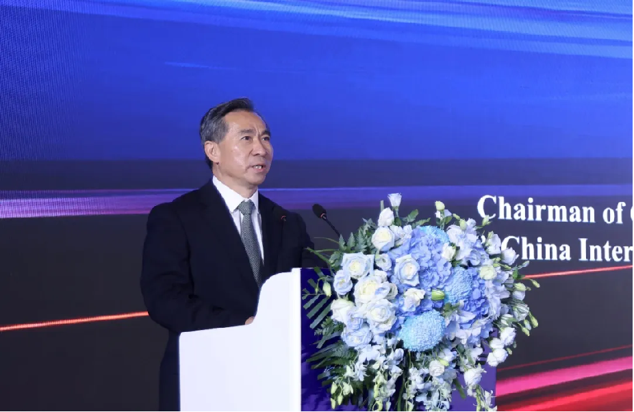 (中國國際貿(mào)易促進(jìn)委員會會長、貿(mào)仲主任任鴻斌在開幕式上致辭)