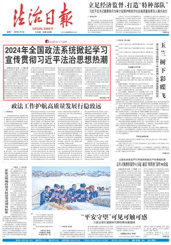 本報北京1月12日訊 記者蔡長春 全國政法系統(tǒng)堅持不懈用習近平新時代中國特色社會主義思想凝心鑄魂,2024年以來,持續(xù)深入學習宣傳貫徹習近平新時代中國特色社會主義思想特別是習近平法治思想,掀起學習宣傳貫徹習近平法治思想熱潮。