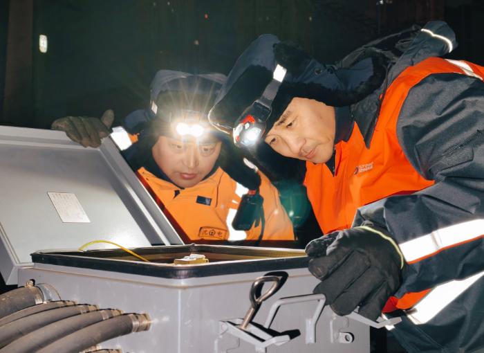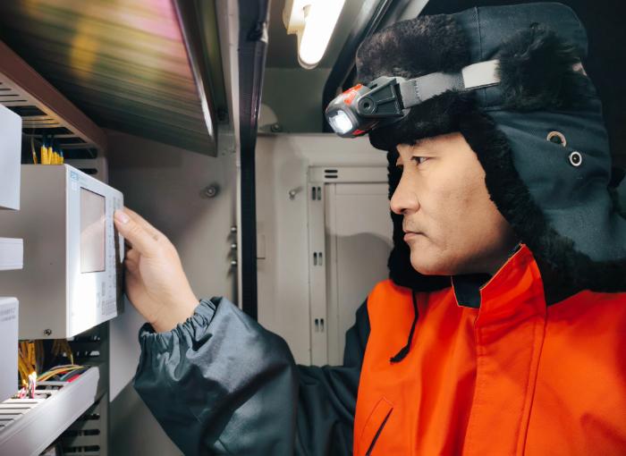 “天黑,大家注意腳下,防止滑倒,注意人身安全?!备邘r囑咐著工友,自己則一邊向前走,一邊觀察每一處設(shè)備外觀狀態(tài),走到138號道岔時(shí),他蹲下身子,從工具包里掏出扳手,開始仔細(xì)地檢查每一處螺栓,發(fā)現(xiàn)一處關(guān)鍵螺栓有松動(dòng)跡象,他立即緊固好,呼出的熱氣在睫毛上凝結(jié)成冰碴,模糊了視線,他就趁著起身的間隙,用袖子匆匆擦一把。