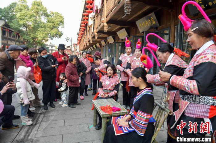 中新網(wǎng)福州1月21日電 (林晉如 劉其燚)“今天的活動真的太棒了!不僅能在集市上買各地的特產(chǎn),還能在溪尾街見識到這么多具有畬族民俗特色的東西,真是大開眼界?!?1日,羅源人林心揚在福建省福州市羅源縣鳳山鎮(zhèn)溪尾街歷史文化街區(qū)游玩時說。